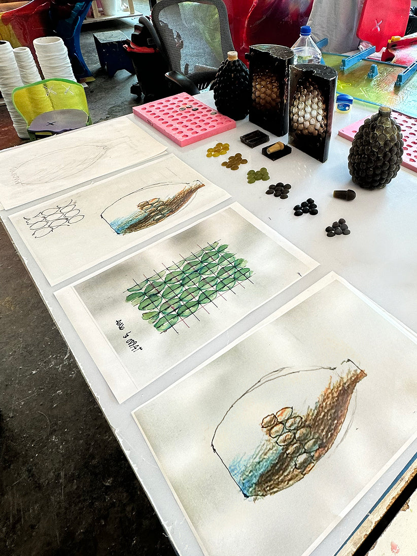 In the earliest days of Flamingo Estate, Gaetano generously agreed to create a limited edition of resin ice buckets to celebrate the launch of our first wine, Pink Moon. When our mutual curiosities began to click, something special took root. Decanter is the first in a trilogy of precious objects designed for Flamingo Estate by Gaetano Pesce.