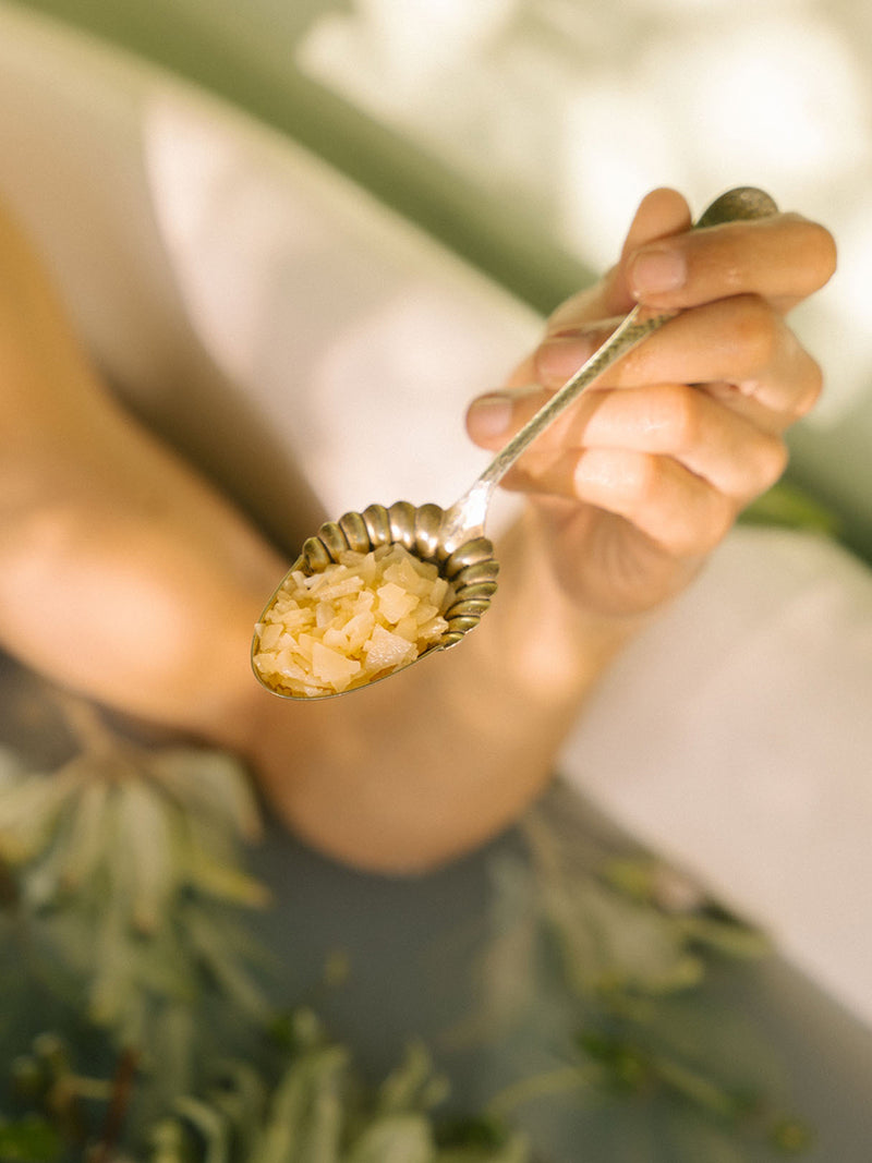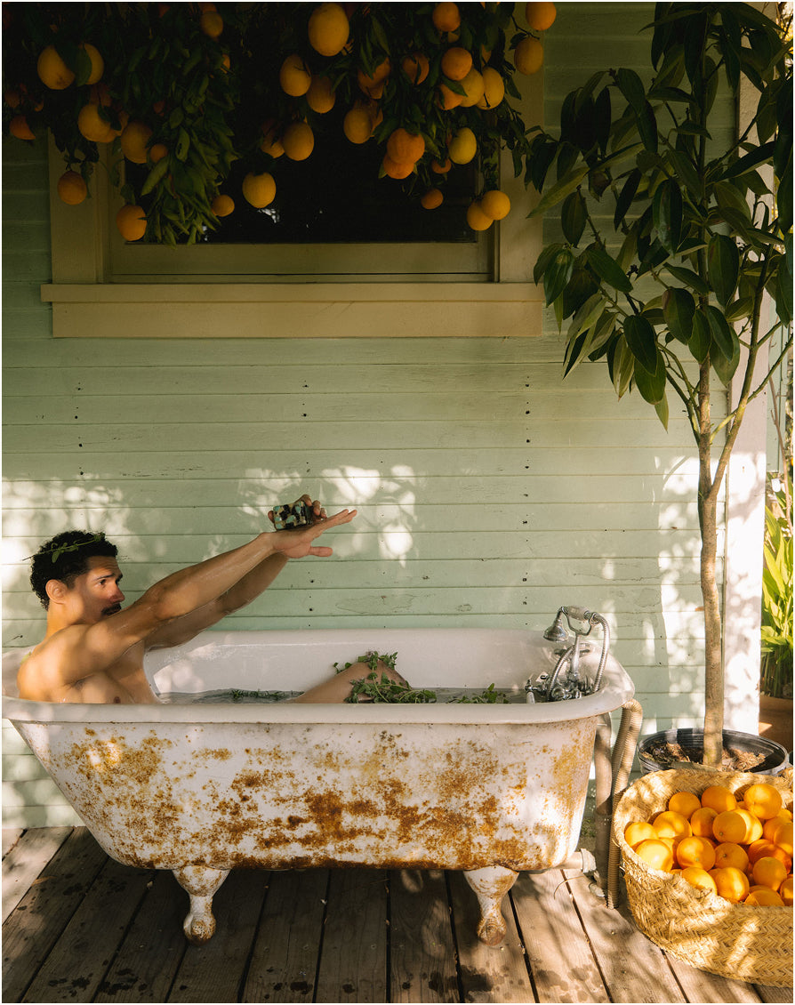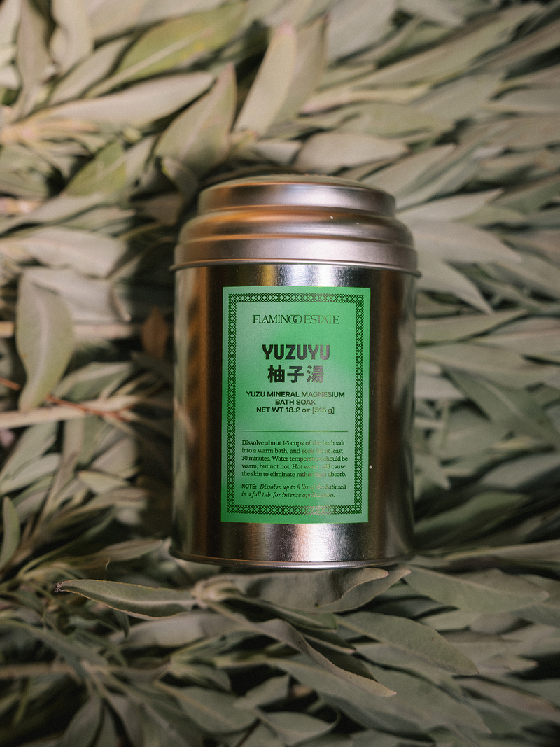 When I moved in, we found an old cast iron tub in the Goat Shed and dragged it onto the deck, where we now wash fruit, soak plants, and sometimes take an outdoor bath. This year, we began dropping whole Yuzu into the hot water, releasing their tantalizing scent into the evening air—a ritual that became our Yuzu Magnesium Bath Soak. A massively fragrant, buoyant bathing experience that sensorially resets. Inspired by Japanese yuzuyu (柚子湯), it blends bright Yuzu, Zechstein magnesium flakes, and sweet Almond oil to calm the body, soften the skin, and clear the mind.