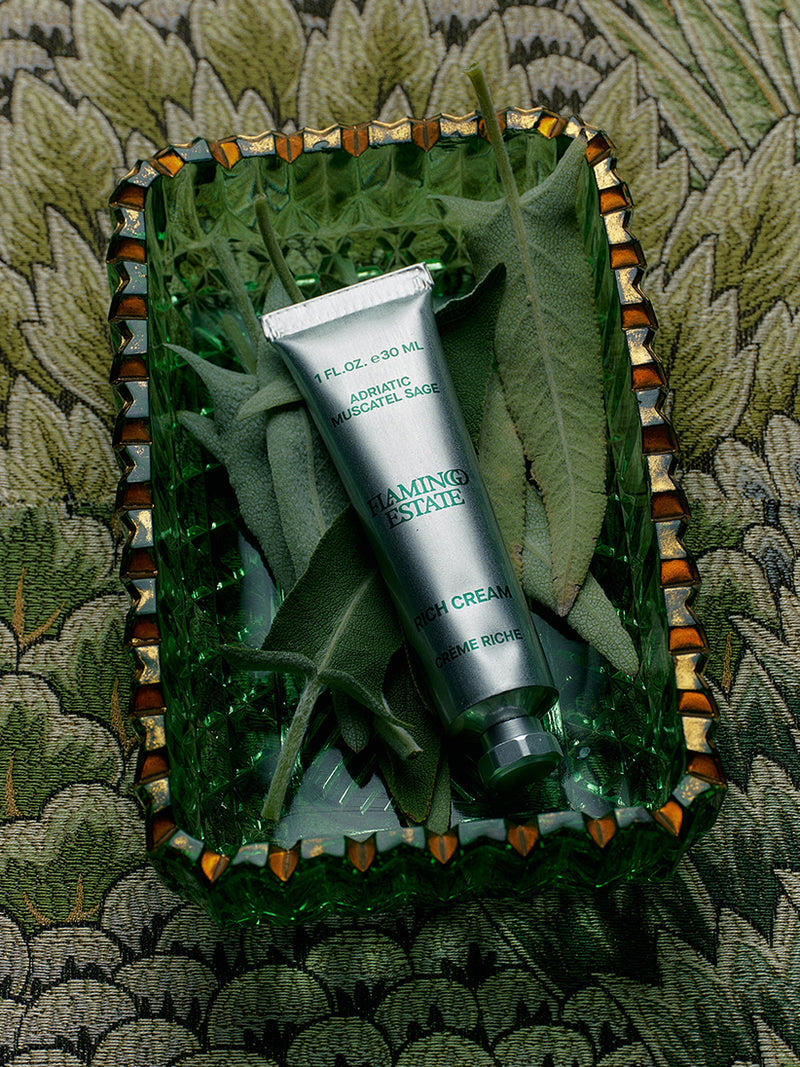 Our Sage Rich Cream smells unlike anything else in beauty—alive, green, and sun-struck, like Sage warming on the hillside. We distilled this potent botanical and folded it into our legendary Rich Cream base—a luscious, nourishing formula that works. Sage’s Latin name, Salvia, comes from salvare—to save—and here it does just that. Clarifying, comforting, and deeply hydrating with concentrated Sage, Shea Butter, Lanolin, Olive and Sunflower oils. The result is a profoundly restorative salve—soothing, plumping, and reviving even the driest, most stressed skin.
